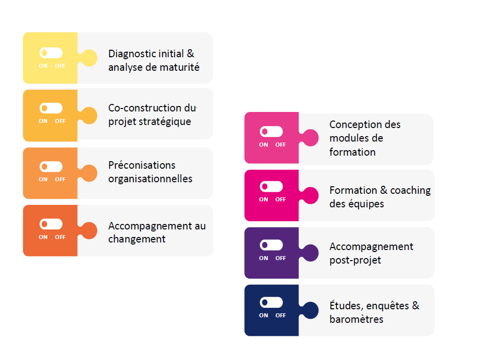 Appui sur les insights des études pour alimenter la réflexion, intégrer les résultats dans la dynamique collaborative et identifier les leviers culturels et organisationnels.